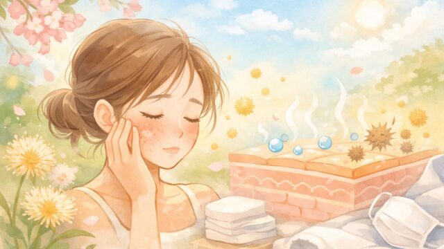 春の肌荒れは花粉が原因?乾燥と摩擦で乱れる肌バリアを守る方法を解説。皮むけ・かゆみの対策、冷やすor温める判断、今夜からの3ステップも紹介します。