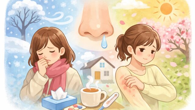 寒暖差で咳や透明な鼻水、蕁麻疹が出るのはなぜ?春先に起こりやすい不調の原因をわかりやすく解説。花粉症や風邪との違い、家でできる対策、受診の目安までやさしく紹介します。