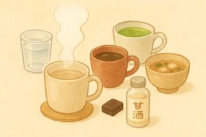 • 甘酒(発酵・ビタミンB群): 「飲む点滴」と呼ばれるほど栄養豊富で、腸を優しく整える。
