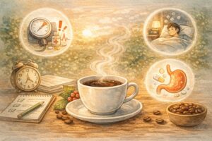 飲んだあとに動悸・胃の不快感・眠れないなどが出る場合は、「量」よりも時間帯・濃さ・空腹かどうかを見直すのがおすすめです。