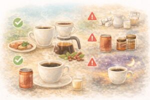 💡 服薬内容(特に血糖降下薬)や合併症の有無で判断が変わることがあります。迷うときは、診察時に「コーヒーの量・時間帯」を具体的に伝えて相談するとスムーズです。