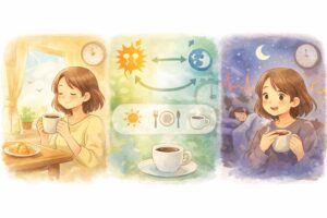 この記事では、カフェインの作用時間と体内時計(サーカディアンリズム)をベースに、