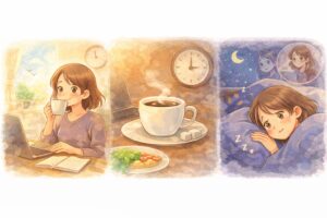 カフェインは体の中に数時間残り、夕方以降の一杯が寝つきや睡眠の深さに影響することがあります。
