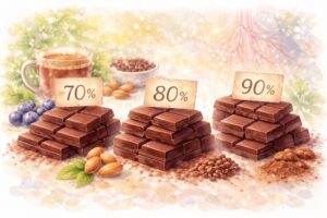 「健康効果(ポリフェノールなど)」を期待するなら、高カカオがおすすめです。ミルクチョコは一般的に砂糖や乳成分が多く、カカオ由来成分が相対的に少なめ。まずは70%から始めると、苦味と続けやすさのバランスが取りやすいです。