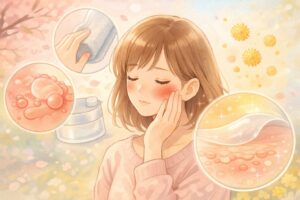 でも春の肌荒れは、あなたの努力不足ではなく、春の環境(花粉・摩擦・乾燥)が重なって起きやすい“季節の反応”であることが多いのです。