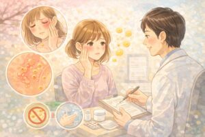 「花粉だけじゃなく、別のかぶれも混ざっていた」ケースもあるので、整理してもらえるのが受診の大きな価値です。