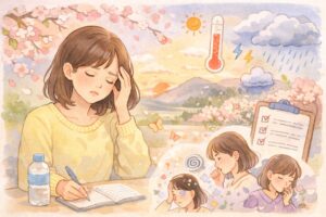 また、天気と体調の記録をつけておくと、「雨の前に悪化しやすい」「寝不足が重なるとつらい」など、自分のパターンが見えやすくなります。低気圧の日は、頑張って乗り切るより、悪化させない過ごし方を意識するのがポイントです。