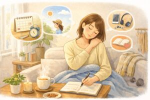 つらい日は、完全な無音を避けて、やさしい音や落ち着ける環境を整える工夫も役立ちます。