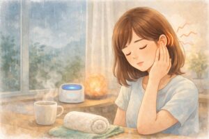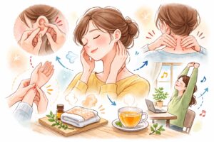 つらい日は、首こりも耳鳴りも、体が「少し休ませて」と伝えているサインかもしれません。そんな日は、まず責めるより、整える。やさしく扱うことが、後にお伝えするセルフケアの土台になります。