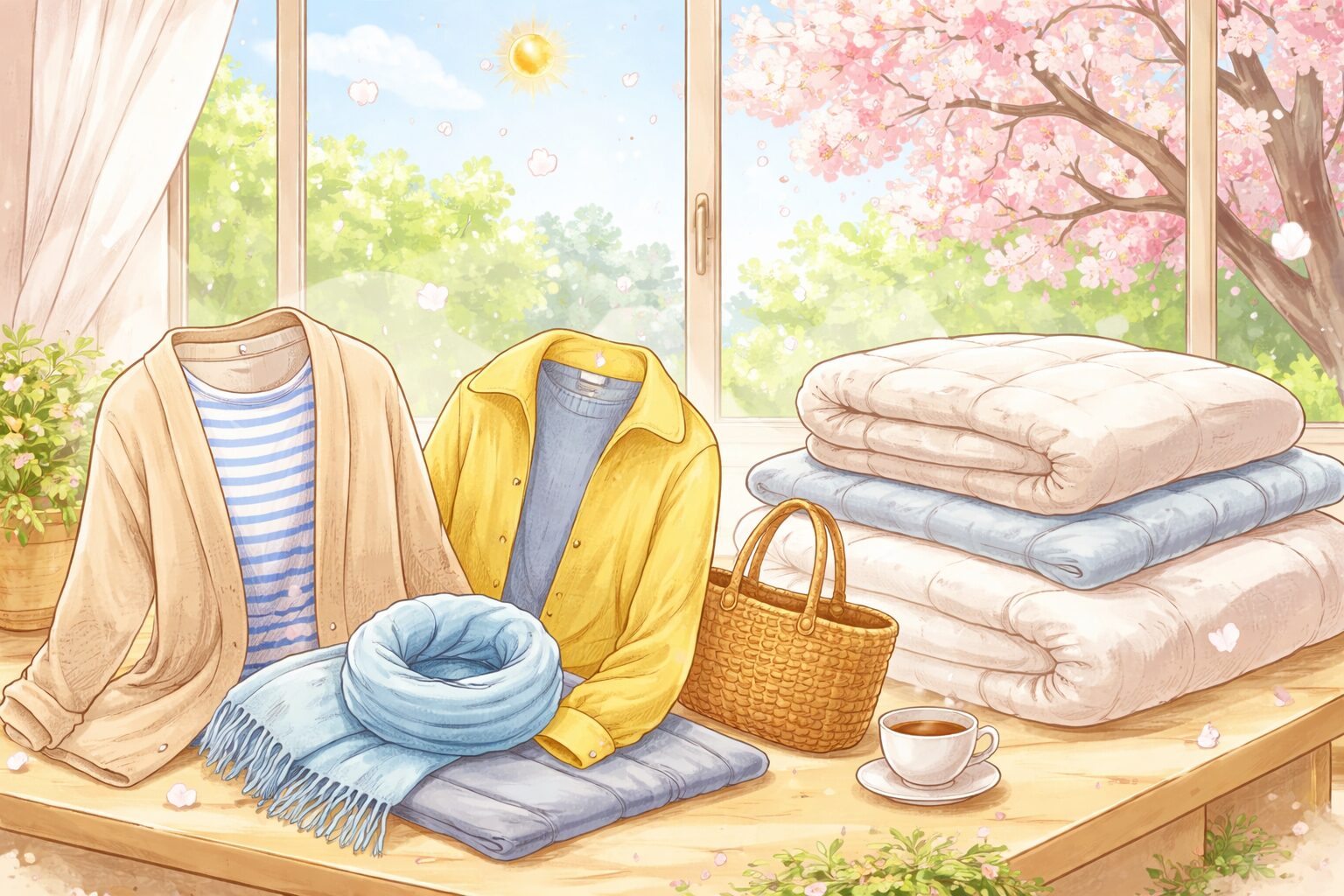 服装も、寝具も、寝室環境も、「これで完璧」と決め打ちするほど、春の揺らぎには合わせにくくなります。反対に、「少し暑ければ脱げる」「少し寒ければ足せる」「眠りにくければ翌日に少し見直せる」――そんな余白があるだけで、春の毎日はぐっと過ごしやすくなります。