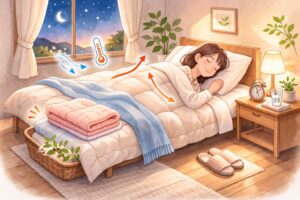 服装や寝具だけでなく、背景に睡眠障害や別の健康問題が隠れていることもあるため、医療機関への相談もご検討ください。