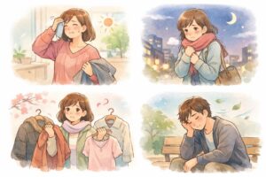 服装の失敗というと、「ちょっと恥ずかしい」「今日は失敗したな」で終わるように思えるかもしれません。けれど実際には、春の寒暖差による服装のズレは、体の疲れにもつながりやすいものです。