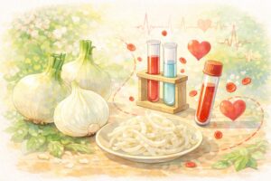 玉ねぎに関する研究では、含まれる硫黄化合物の量と抗血小板活性との関連が報告されています。少し難しく感じるかもしれませんが、ここでいう「抗血小板活性」とは、血小板が集まる働きに関わる研究上の視点のことです。