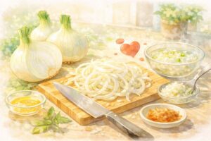 「生で食べたほうがいいのかな」と迷う日ほど、時間帯で考えてみるのはおすすめです。朝は軽やかに、夜はやさしく。そんなふうに使い分けると、新玉ねぎはもっと暮らしになじみます。