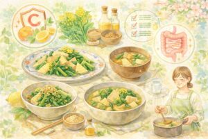 腸活を続けるコツは、完璧な栄養管理ではなく、“食べたくなる形で続けること”です。春野菜は、その入口としてとてもやさしい存在です。