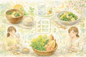 何品も並べる必要はありません。栄養のことを完璧に計算しなくても大丈夫です。続けられる形で、少しだけやさしくする。その小さな積み重ねが、春の不調を整えるいちばん現実的な方法になります。