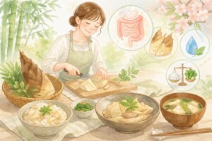 ただし、ここで大切なのは、「たけのこを食べれば便秘が解消する」「むくみが改善する」と断定しないことです。体の状態は、食事だけでなく、水分、運動、睡眠、ストレスなどさまざまな要素が重なって決まります。たけのこは、そうした食生活全体を整える中で活用しやすい春野菜として考えるのが自然です。