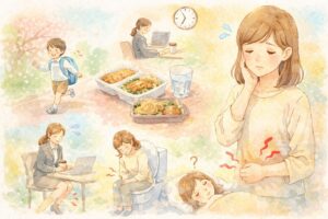 特に便通は、毎日の生活習慣と深く結びついています。朝食を抜く日が続いたり、水分をとるタイミングが減ったり、忙しさでトイレを我慢しがちになったりすると、腸の動きも乱れやすくなります。