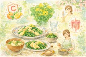 さらに、春野菜は「季節を食べる楽しさ」を運んでくれます。健康のためだけに我慢して食べるのではなく、おいしいから食べたい、旬だから食卓に並べたい。そんな気持ちで続けられることが、結果として腸活を長続きさせる力になります。