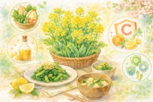 一方で菜の花は、ビタミンCをとりやすい春野菜として、体調管理が気になる季節に意識したい存在です。ほろ苦さや彩りもあり、春の食卓を明るく、軽やかにしてくれます。