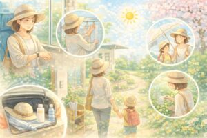 徒歩や送迎が多い方は日傘、両手を空けたい方やベランダ時間が多い方は帽子が使いやすいかもしれません。大切なのは、理想の対策を思い描くことよりも、“自分が続けやすい形”を見つけることです。