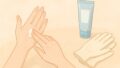 手の温度で保湿剤を少し温めてからなじませると、浸透力が上がり、摩擦も減らせます。