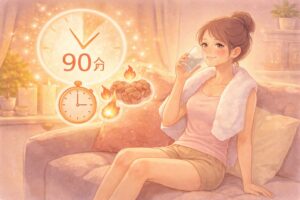 ダイエットの観点で大事なのは、汗の量ではなく、深部体温が上がって血流や代謝が整うことです。湯船でじんわり温まることで、脂肪が“使われやすい身体”へと近づいていきます。