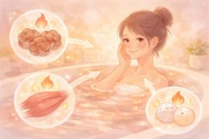 入浴温度や入浴時間を少し意識するだけで、血流が促され、代謝が上がりやすい状態へと体は自然に整っていきます。