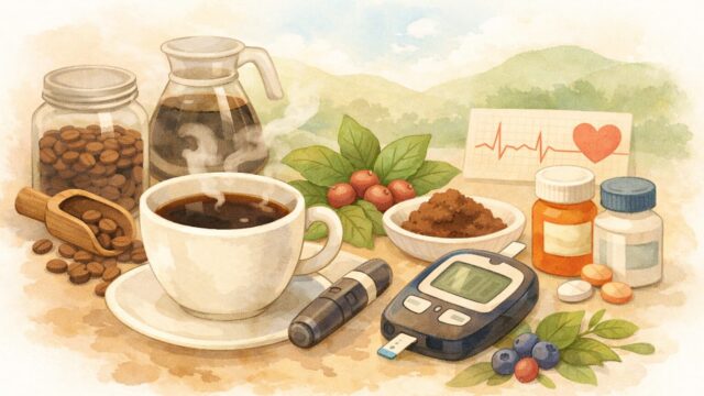 コーヒーは血糖値や糖尿病予防に影響する?クロロゲン酸やカフェインの作用を根拠付きで解説。血糖値が気になる人にとって安心な飲み方も紹介します。